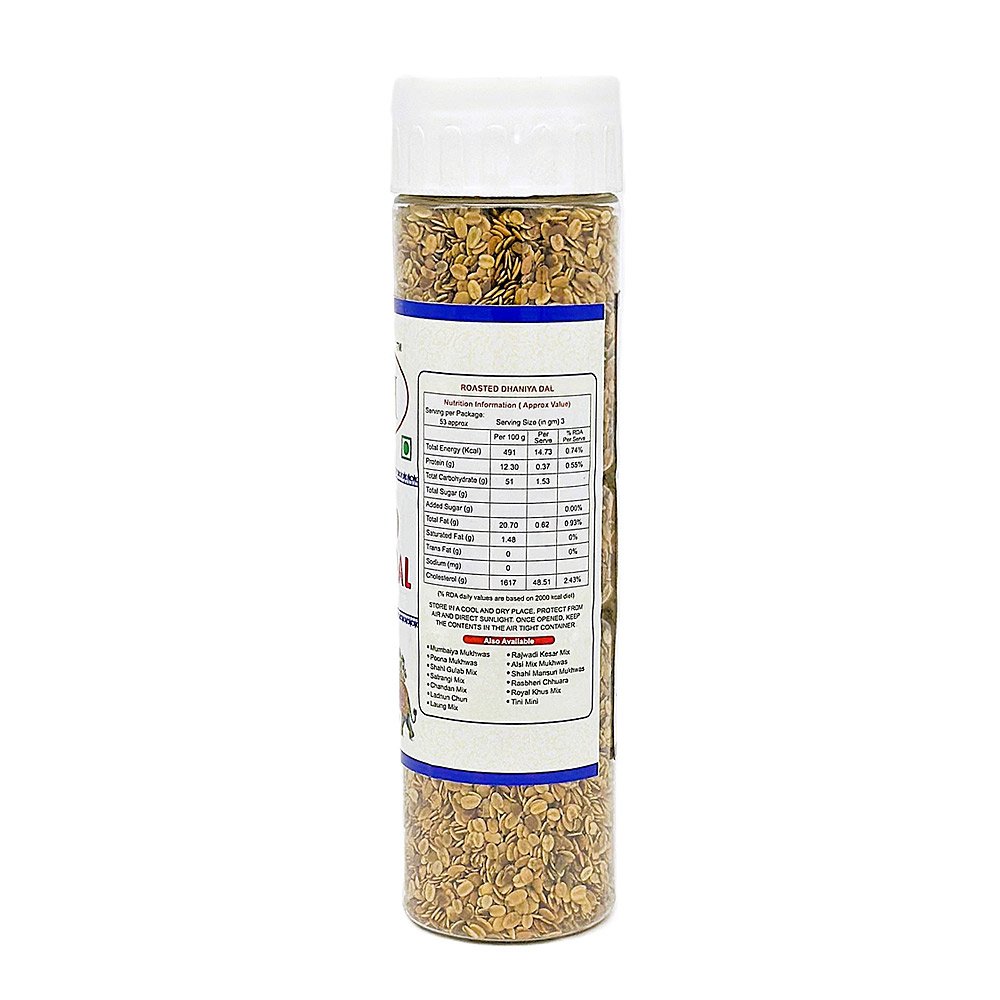 Roasted Dhaniya Dal is a healthy and tasty snack made from roasted coriander seeds is a crisp and flavourful snack made from premium coriander seeds. Also known a superfood these aids in Cholesterol control, controlling diabetes and treating Antibacterial, Anti-Fungal and Insecticidal effects.